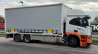 Deze Iveco kan worden voor zien van een dichte laadbak met de maten 7.3 meter lang en 2.67 meter hoog. En de auto is tevens voorzien va een meeneemheftruck inrichting zodat we ten allertijden zelf de vracht kunnen lossen op locatie.